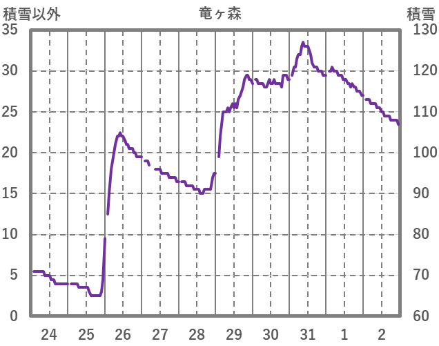 | 日 | 時 | 気温 | 降水 | 風向/風速 | 日照 | 積雪 | 降雪 |
