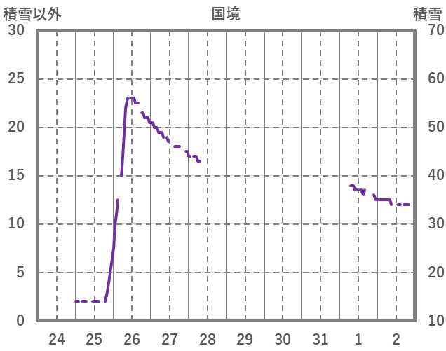 | 日 | 時 | 気温 | 降水 | 風向/風速 | 日照 | 積雪 | 降雪 |