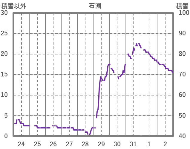 | 日 | 時 | 気温 | 降水 | 風向/風速 | 日照 | 積雪 | 降雪 |