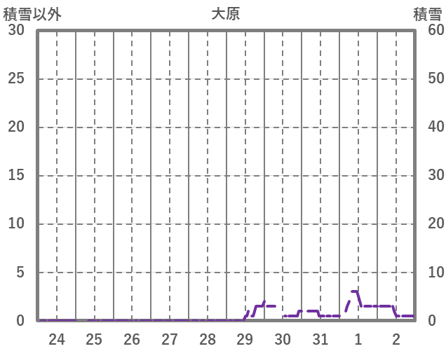 | 日 | 時 | 気温 | 降水 | 風向/風速 | 日照 | 積雪 | 降雪 |