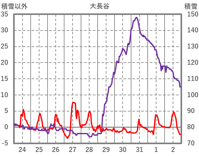 | 日 | 時 | 気温 | 降水 | 風向/風速 | 日照 | 積雪 | 降雪 |