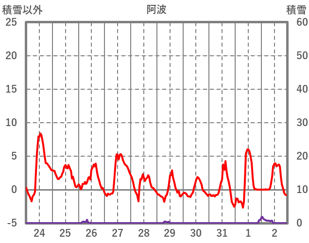 | 日 | 時 | 気温 | 降水 | 風向/風速 | 日照 | 積雪 | 降雪 |