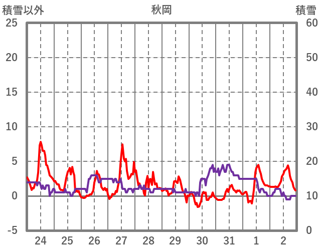 | 日 | 時 | 気温 | 降水 | 風向/風速 | 日照 | 積雪 | 降雪 |