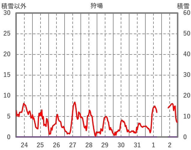 | 日 | 時 | 気温 | 降水 | 風向/風速 | 日照 | 積雪 | 降雪 |