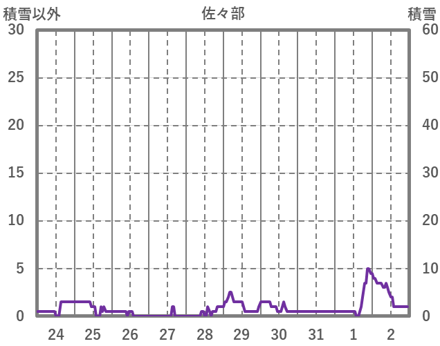 | 日 | 時 | 気温 | 降水 | 風向/風速 | 日照 | 積雪 | 降雪 |