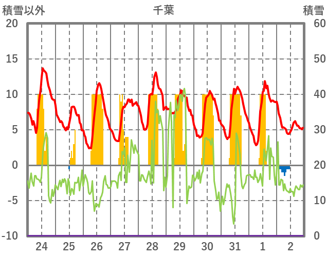 | 日 | 時 | 気温 | 降水 | 風向/風速 | 日照 | 積雪 | 降雪 |