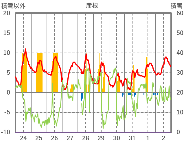 | 日 | 時 | 気温 | 降水 | 風向/風速 | 日照 | 積雪 | 降雪 |