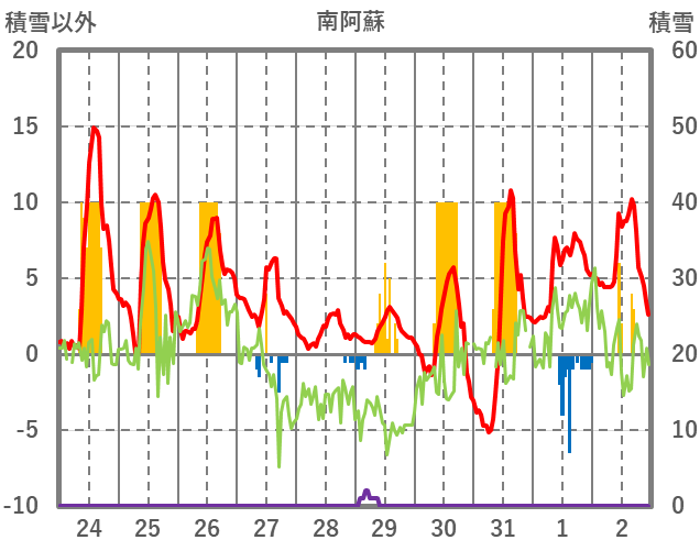 | 日 | 時 | 気温 | 降水 | 風向/風速 | 日照 | 積雪 | 降雪 |