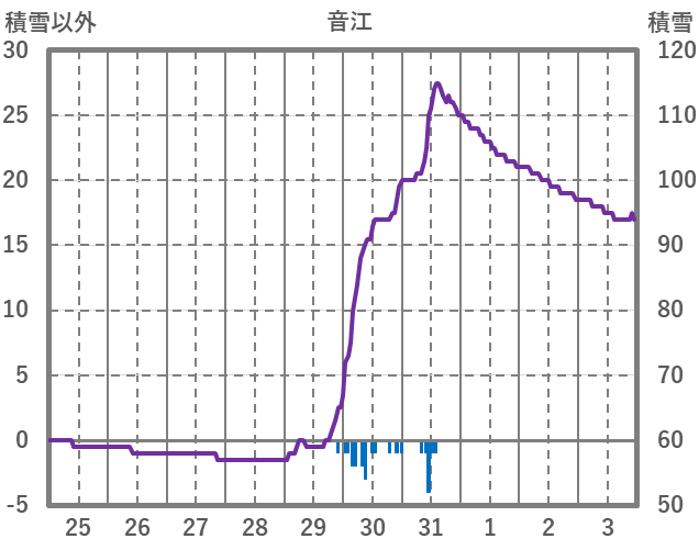 | 日 | 時 | 気温 | 降水 | 風向/風速 | 日照 | 積雪 | 降雪 |