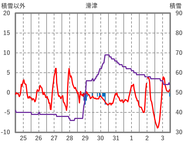| 日 | 時 | 気温 | 降水 | 風向/風速 | 日照 | 積雪 | 降雪 |