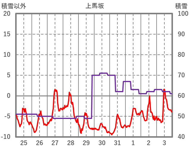 | 日 | 時 | 気温 | 降水 | 風向/風速 | 日照 | 積雪 | 降雪 |