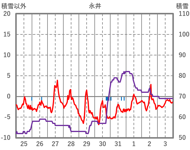 | 日 | 時 | 気温 | 降水 | 風向/風速 | 日照 | 積雪 | 降雪 |
