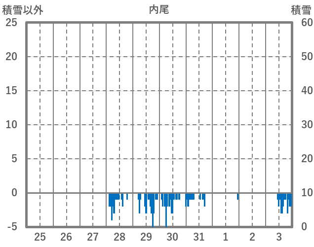 | 日 | 時 | 気温 | 降水 | 風向/風速 | 日照 | 積雪 | 降雪 |