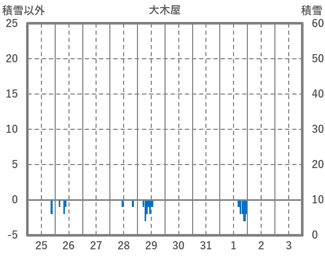 | 日 | 時 | 気温 | 降水 | 風向/風速 | 日照 | 積雪 | 降雪 |