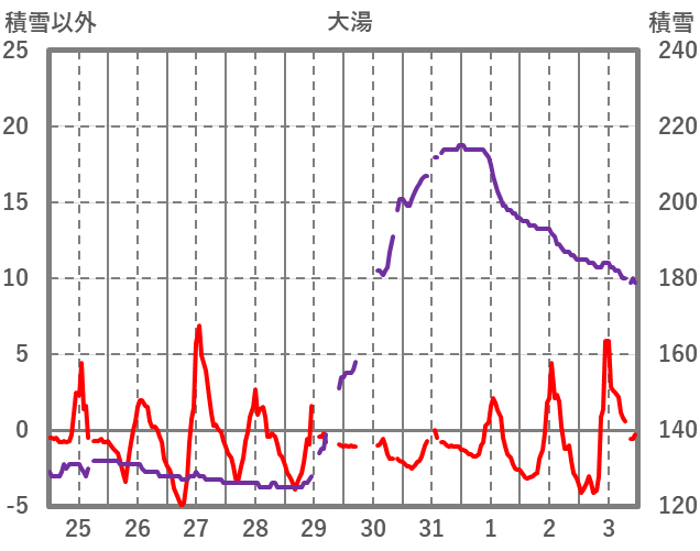 | 日 | 時 | 気温 | 降水 | 風向/風速 | 日照 | 積雪 | 降雪 |
