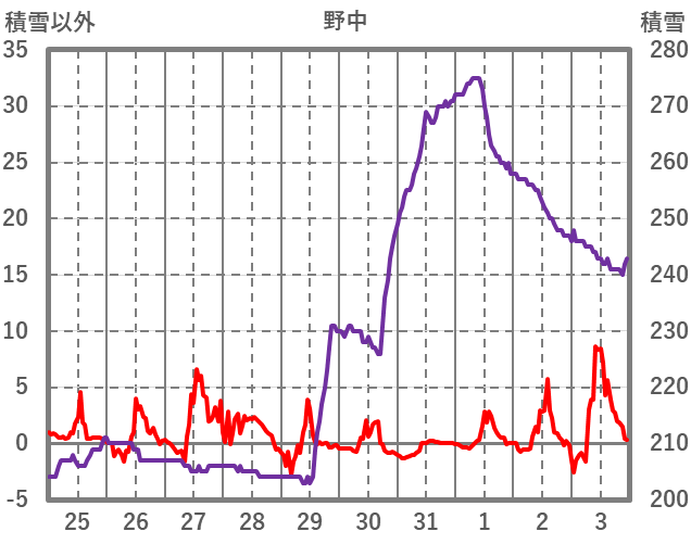 | 日 | 時 | 気温 | 降水 | 風向/風速 | 日照 | 積雪 | 降雪 |