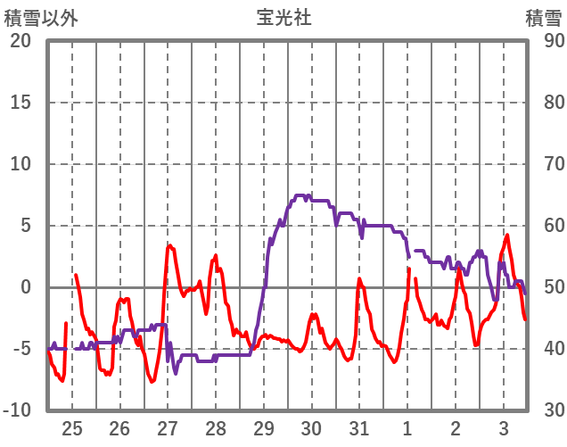| 日 | 時 | 気温 | 降水 | 風向/風速 | 日照 | 積雪 | 降雪 |