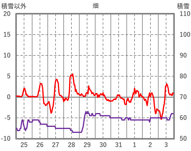 | 日 | 時 | 気温 | 降水 | 風向/風速 | 日照 | 積雪 | 降雪 |