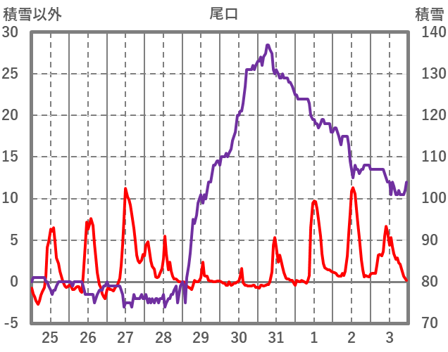 | 日 | 時 | 気温 | 降水 | 風向/風速 | 日照 | 積雪 | 降雪 |