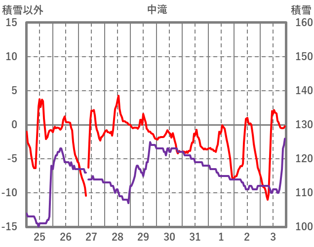 | 日 | 時 | 気温 | 降水 | 風向/風速 | 日照 | 積雪 | 降雪 |