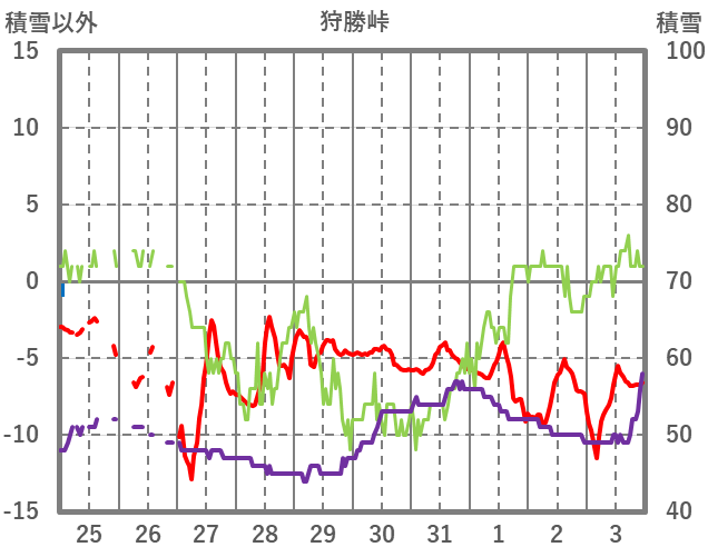 | 日 | 時 | 気温 | 降水 | 風向/風速 | 日照 | 積雪 | 降雪 |