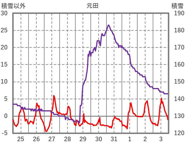| 日 | 時 | 気温 | 降水 | 風向/風速 | 日照 | 積雪 | 降雪 |