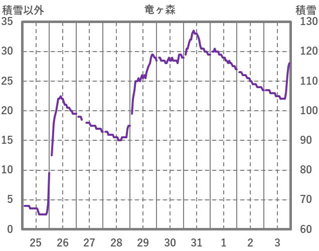 | 日 | 時 | 気温 | 降水 | 風向/風速 | 日照 | 積雪 | 降雪 |
