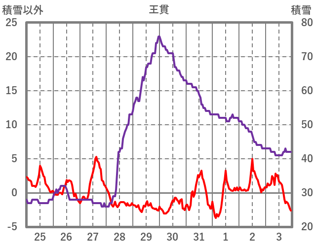 | 日 | 時 | 気温 | 降水 | 風向/風速 | 日照 | 積雪 | 降雪 |