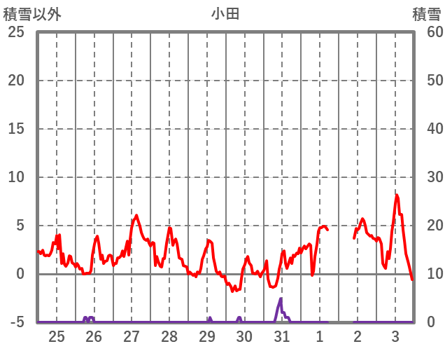 | 日 | 時 | 気温 | 降水 | 風向/風速 | 日照 | 積雪 | 降雪 |