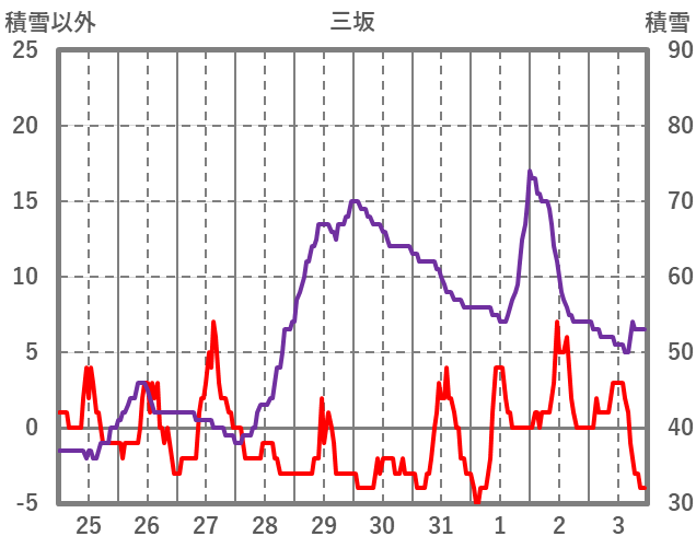 | 日 | 時 | 気温 | 降水 | 風向/風速 | 日照 | 積雪 | 降雪 |