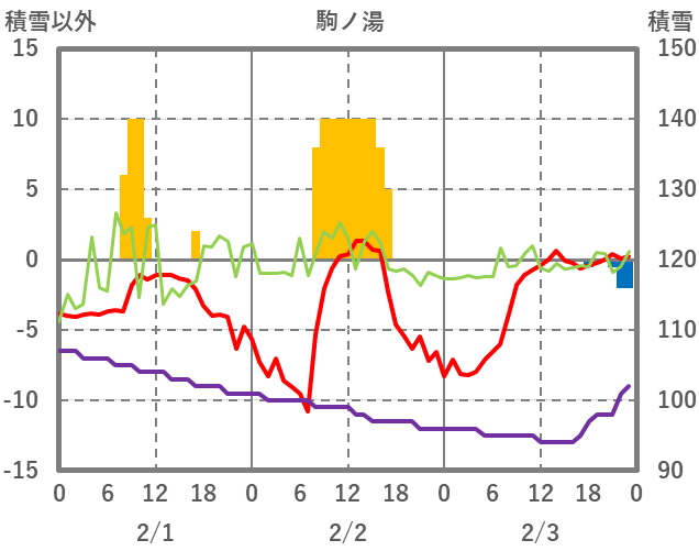 | 日 | 時 | 気温 | 降水 | 風向/風速 | 日照 | 積雪 | 降雪 |