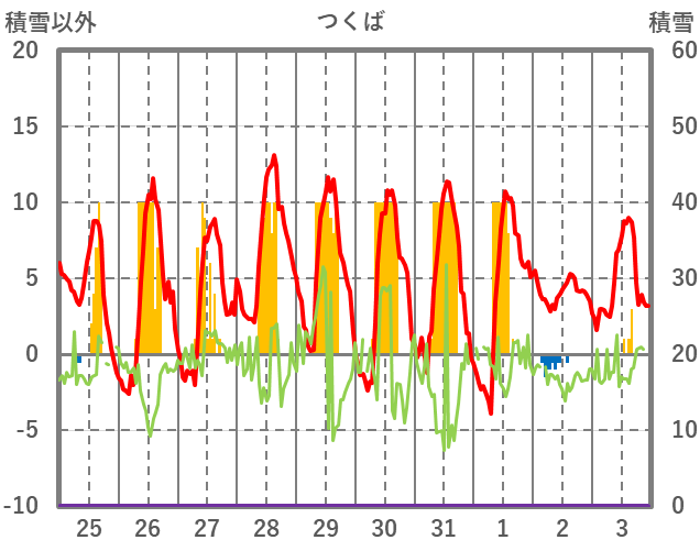 | 日 | 時 | 気温 | 降水 | 風向/風速 | 日照 | 積雪 | 降雪 |