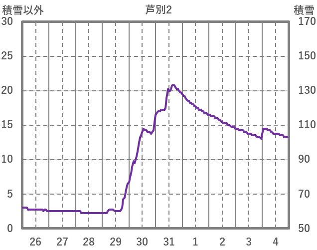 | 日 | 時 | 気温 | 降水 | 風向/風速 | 日照 | 積雪 | 降雪 |