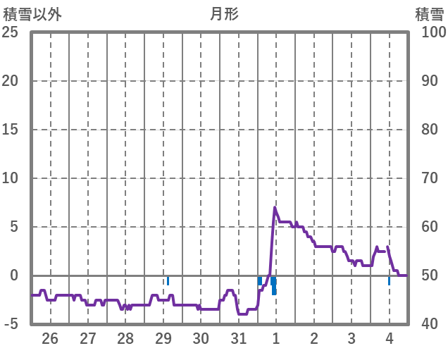 | 日 | 時 | 気温 | 降水 | 風向/風速 | 日照 | 積雪 | 降雪 |