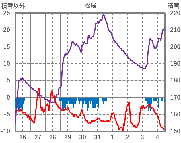 | 日 | 時 | 気温 | 降水 | 風向/風速 | 日照 | 積雪 | 降雪 |