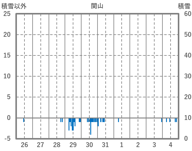 | 日 | 時 | 気温 | 降水 | 風向/風速 | 日照 | 積雪 | 降雪 |