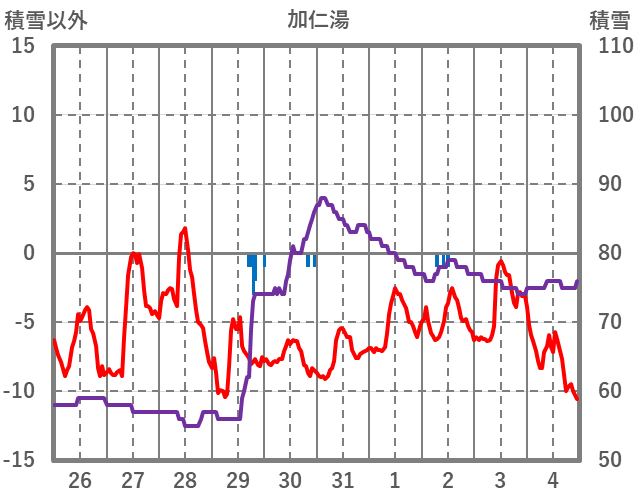 | 日 | 時 | 気温 | 降水 | 風向/風速 | 日照 | 積雪 | 降雪 |