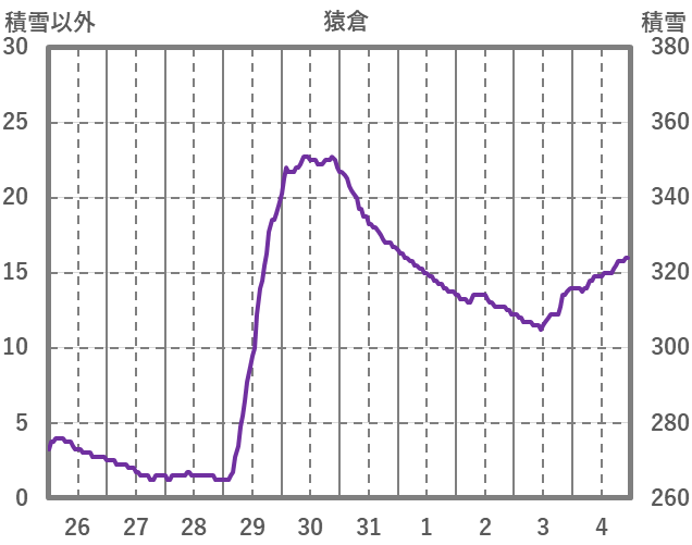 | 日 | 時 | 気温 | 降水 | 風向/風速 | 日照 | 積雪 | 降雪 |