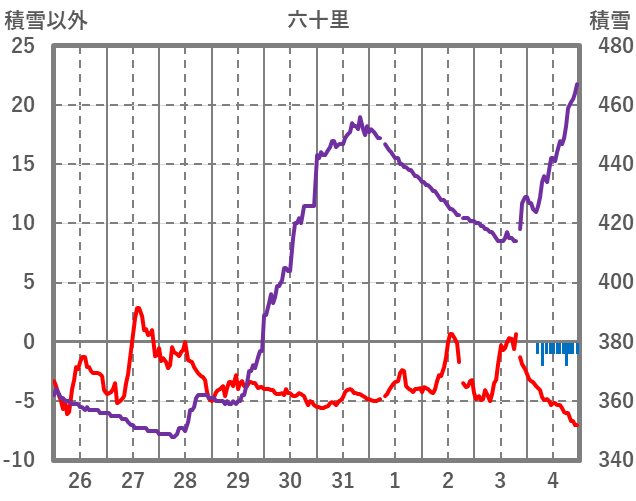 | 日 | 時 | 気温 | 降水 | 風向/風速 | 日照 | 積雪 | 降雪 |