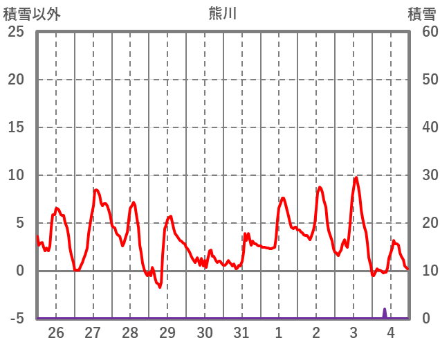 | 日 | 時 | 気温 | 降水 | 風向/風速 | 日照 | 積雪 | 降雪 |