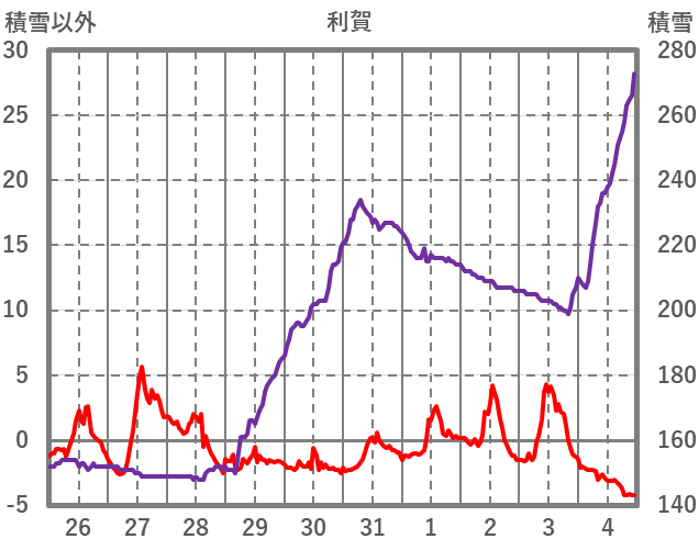 | 日 | 時 | 気温 | 降水 | 風向/風速 | 日照 | 積雪 | 降雪 |