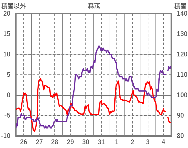 | 日 | 時 | 気温 | 降水 | 風向/風速 | 日照 | 積雪 | 降雪 |