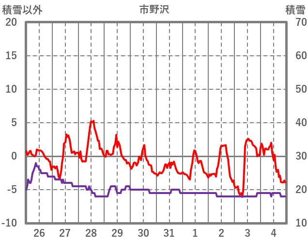 | 日 | 時 | 気温 | 降水 | 風向/風速 | 日照 | 積雪 | 降雪 |