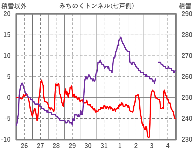 | 日 | 時 | 気温 | 降水 | 風向/風速 | 日照 | 積雪 | 降雪 |