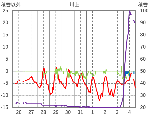 | 日 | 時 | 気温 | 降水 | 風向/風速 | 日照 | 積雪 | 降雪 |