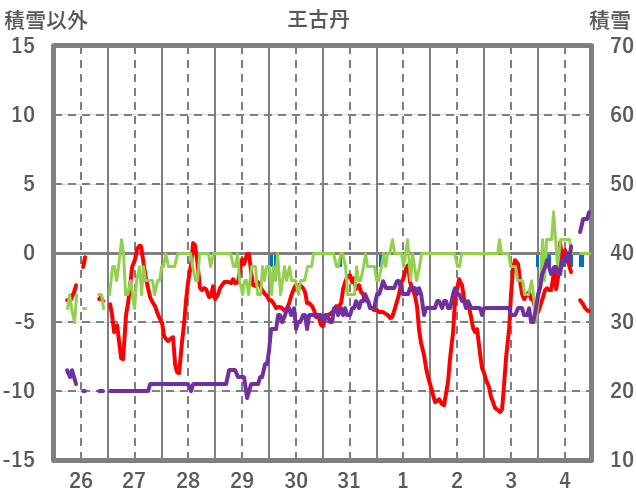 | 日 | 時 | 気温 | 降水 | 風向/風速 | 日照 | 積雪 | 降雪 |