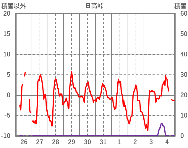 | 日 | 時 | 気温 | 降水 | 風向/風速 | 日照 | 積雪 | 降雪 |