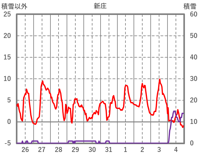 | 日 | 時 | 気温 | 降水 | 風向/風速 | 日照 | 積雪 | 降雪 |
