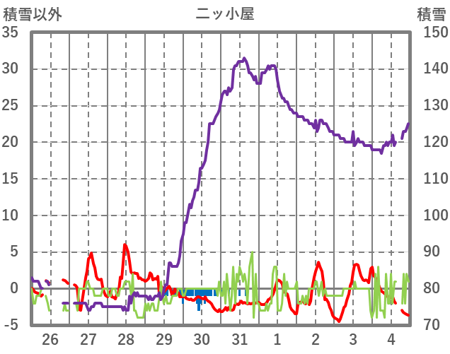| 日 | 時 | 気温 | 降水 | 風向/風速 | 日照 | 積雪 | 降雪 |