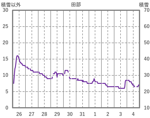 | 日 | 時 | 気温 | 降水 | 風向/風速 | 日照 | 積雪 | 降雪 |